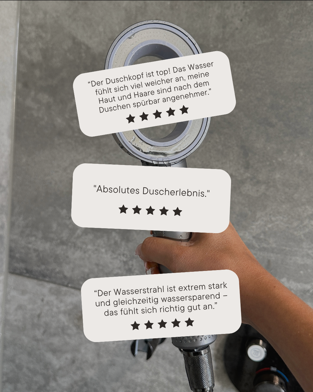 Nein – im Gegenteil. Durch die spezielle Konstruktion der Düsen wird der Wasserdruck sogar verstärkt, während gleichzeitig Wasser gespart wird. So genießt du ein kräftiges Duscherlebnis und schonst dabei noch die Umwelt.